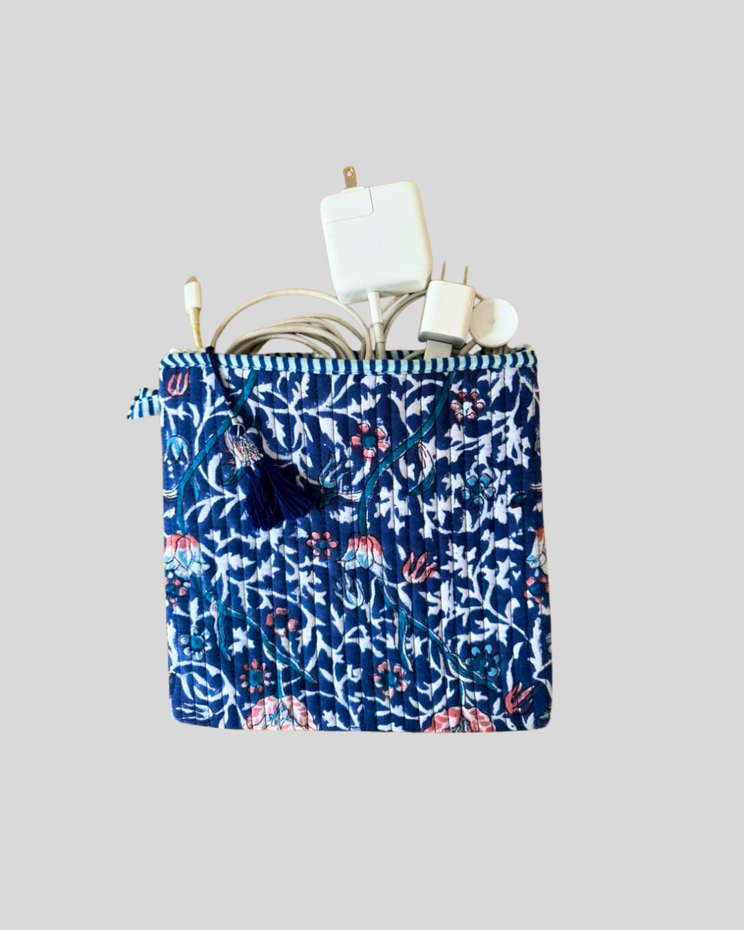 Whether you’re carrying your favorite tech friend or a cherished book, this keeper is made to move with you; from your morning commute to quiet moments at a café or a creative space. Crafted in hand-block printed cotton with a soft quilted feel, it keeps your essentials safe from scratches and folds. A thoughtful piece for dreamers and readers.